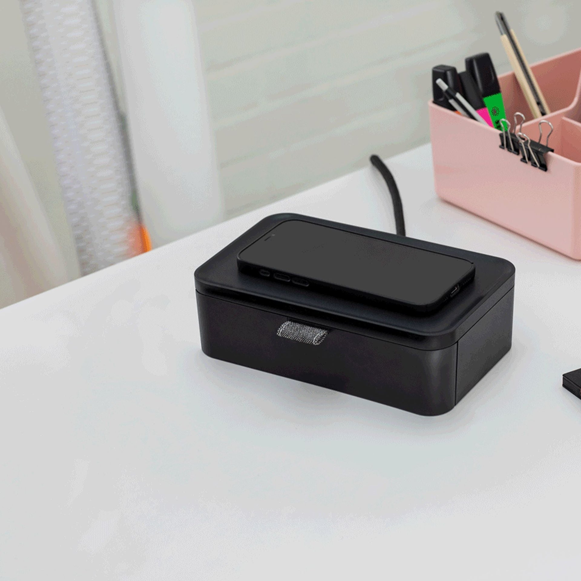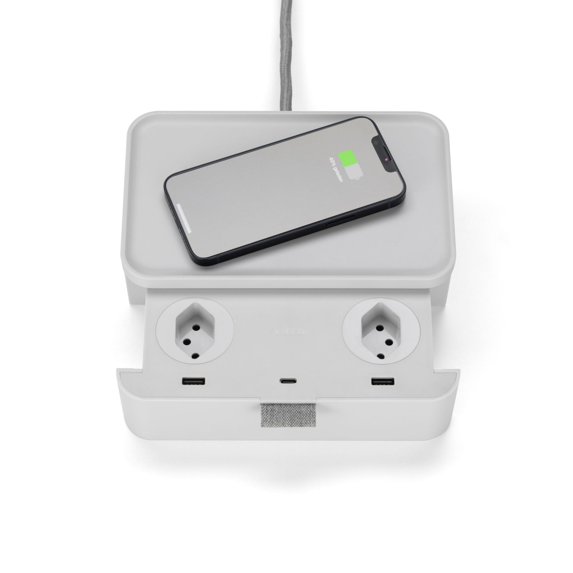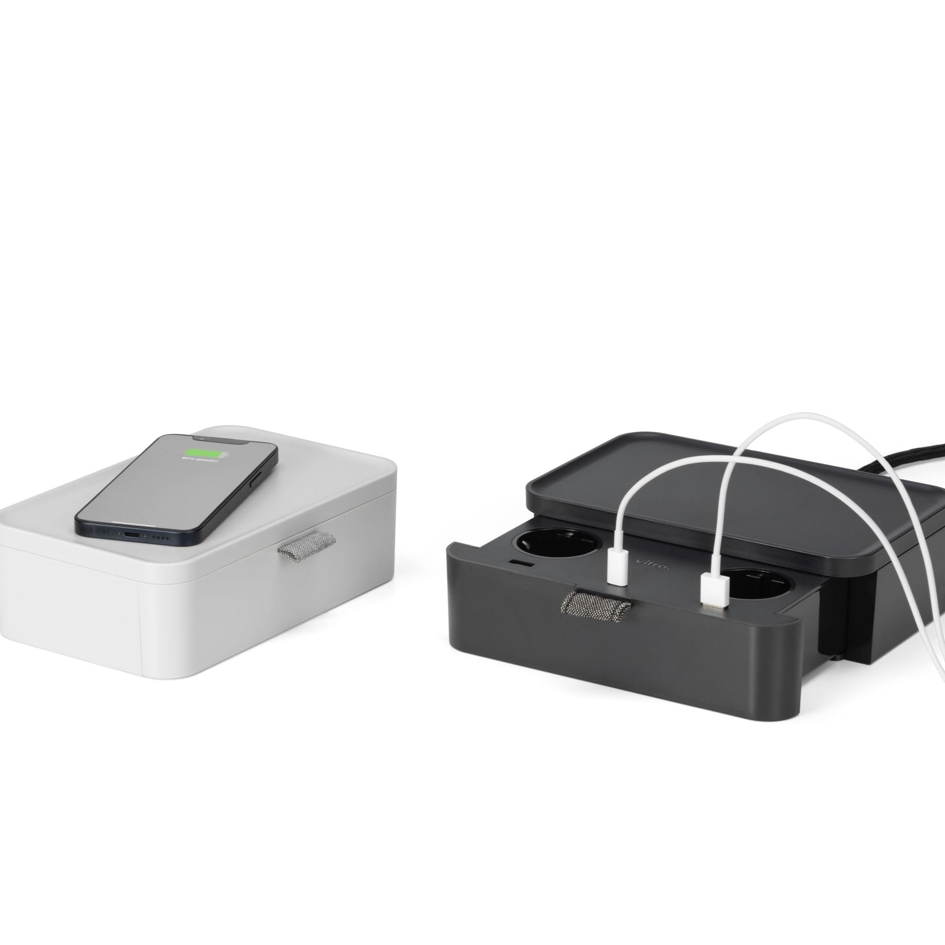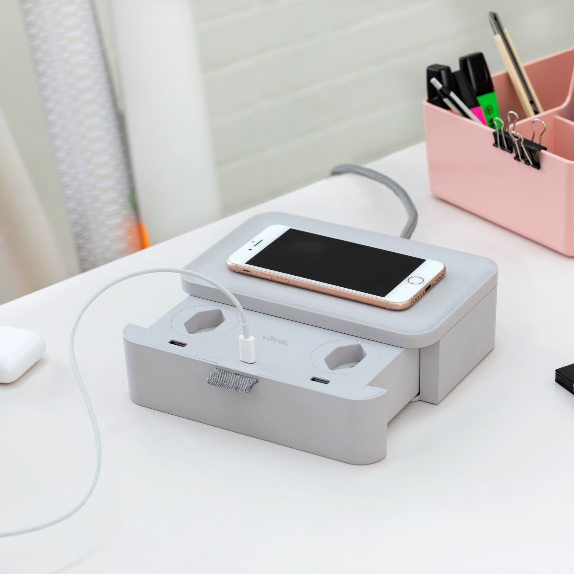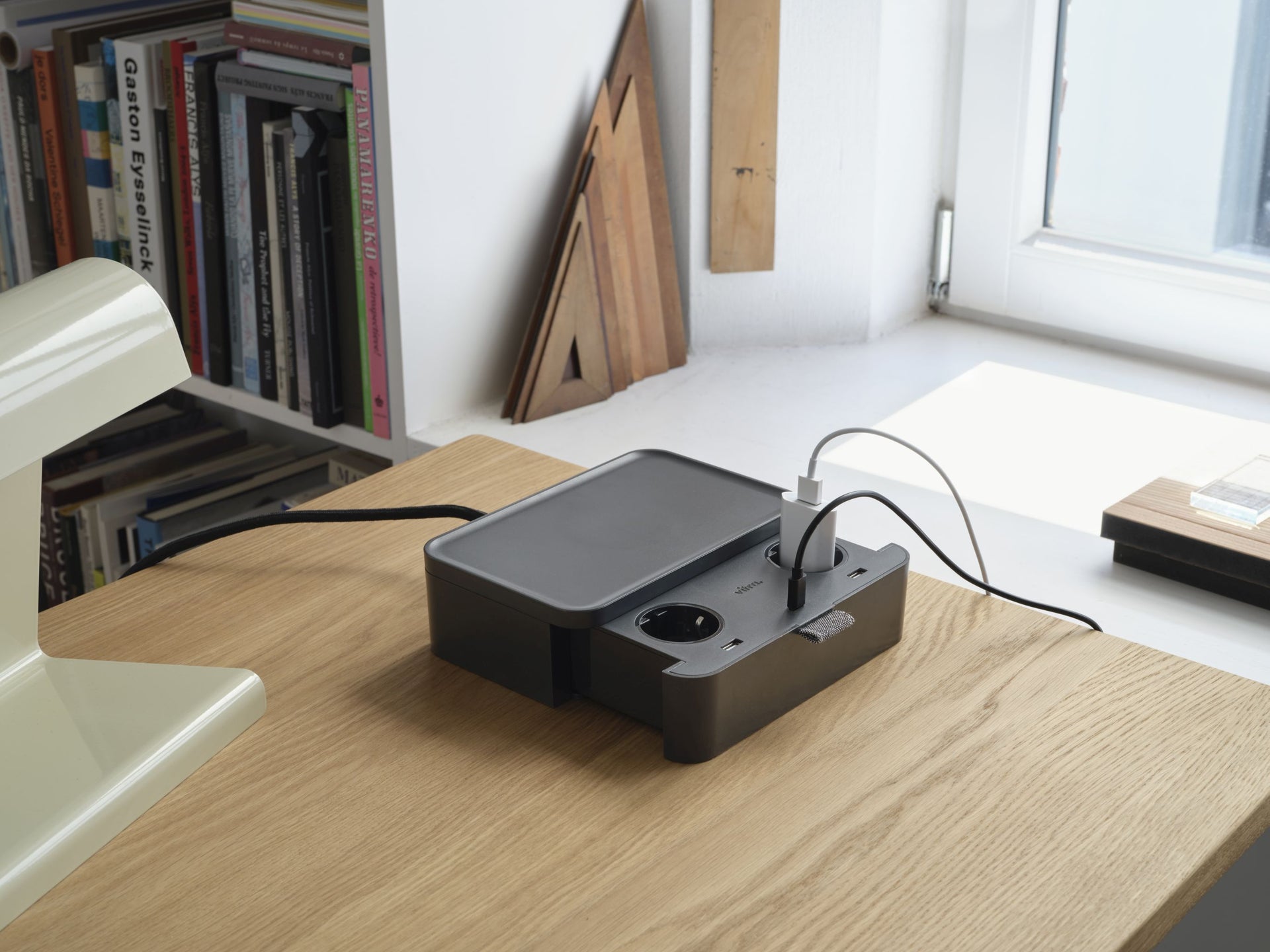 Der Vitra Ampi macht jeden Tisch im Handumdrehen zum modernen Arbeitsplatz – im Büro ebenso wie im Homeoffice. Mit integriertem Wireless-Charger und vielseitigen Anschlüssen bietet die Ladestation maximale Flexibilität für alle Geräte. Sein klares, minimalistisches Design in den Farben basic dark oder soft grey fügt sich harmonisch in jede Umgebung ein.