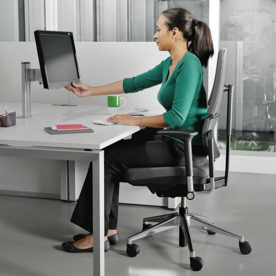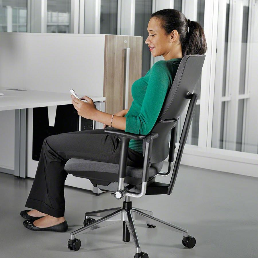 Dank der patentierten LTC² Synchronmechanik passt sich der Stuhl optimal an Ihre Bewegungen an und unterstützt eine gesunde Sitzhaltung. Die charakteristische 2-teilige Rückenlehne bietet eine dynamische und individuelle Unterstützung der Lenden- und oberen Rückenbereiche.