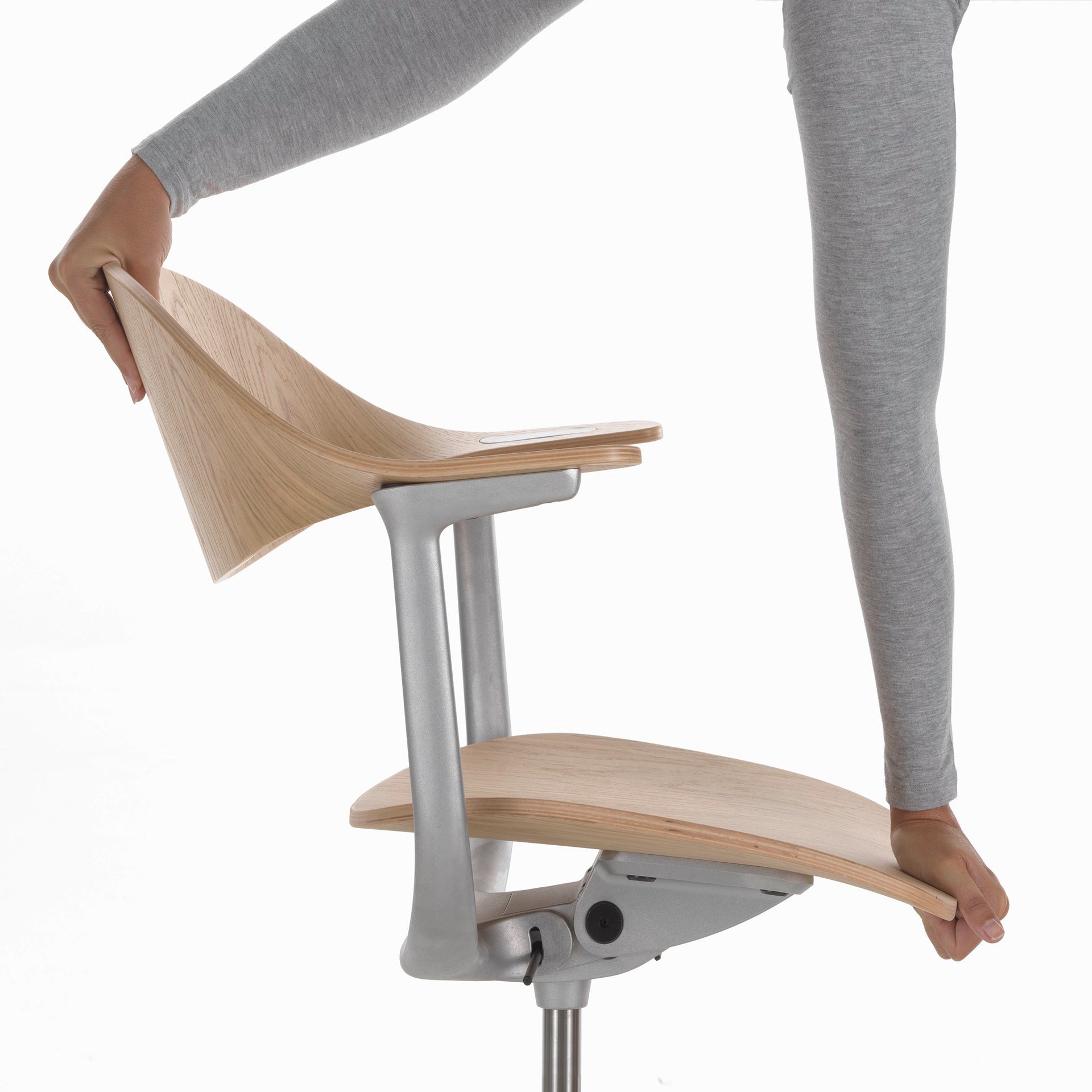Der Mynt Bürostuhl von Erwan Bouroullec verbindet die wohnliche Ästhetik eines Atelierstuhls mit ergonomischer Funktionalität. Die Rückenlehne und der Sitz bestehen zu 100% aus Post-Industrial-Recycling-Material. Durch eine komplett neuartige Sitzdynamik fördert der Stuhl eine gesunde Sitzhaltung und ist ideal für die Nutzung im Homeoffice, Atelier oder Büro geeignet. Ein stilvoller, universell einsetzbarer, nachhaltiger Stuhl in zeitlosem Design.