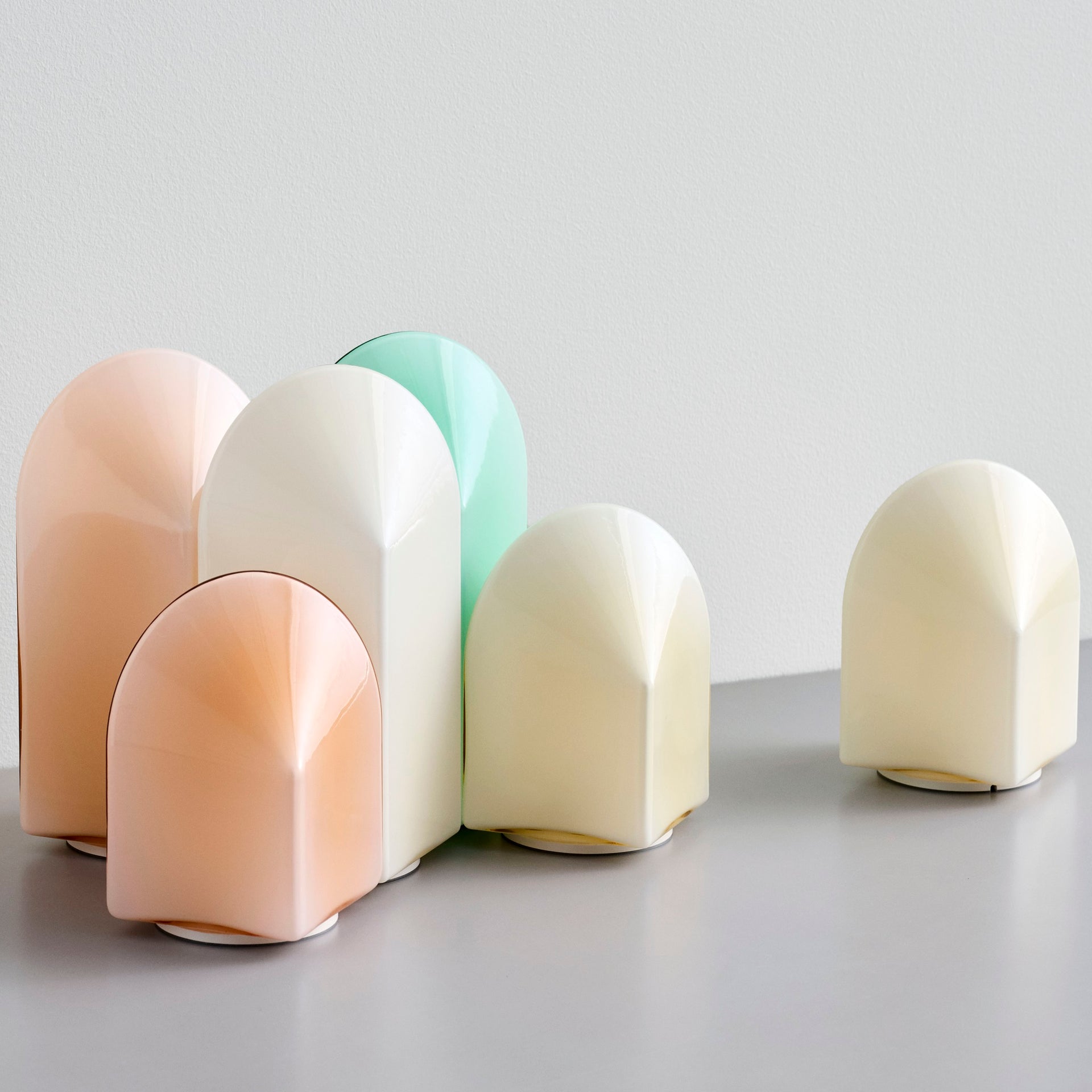 Die sorgfältig ausgewählten Farbtöne und Größen machen die Parade Lampe sowohl in Gruppen als auch als einzelnes Stück zu einem echten Hingucker – ob eingeschaltet oder als skulpturales Dekorationselement.