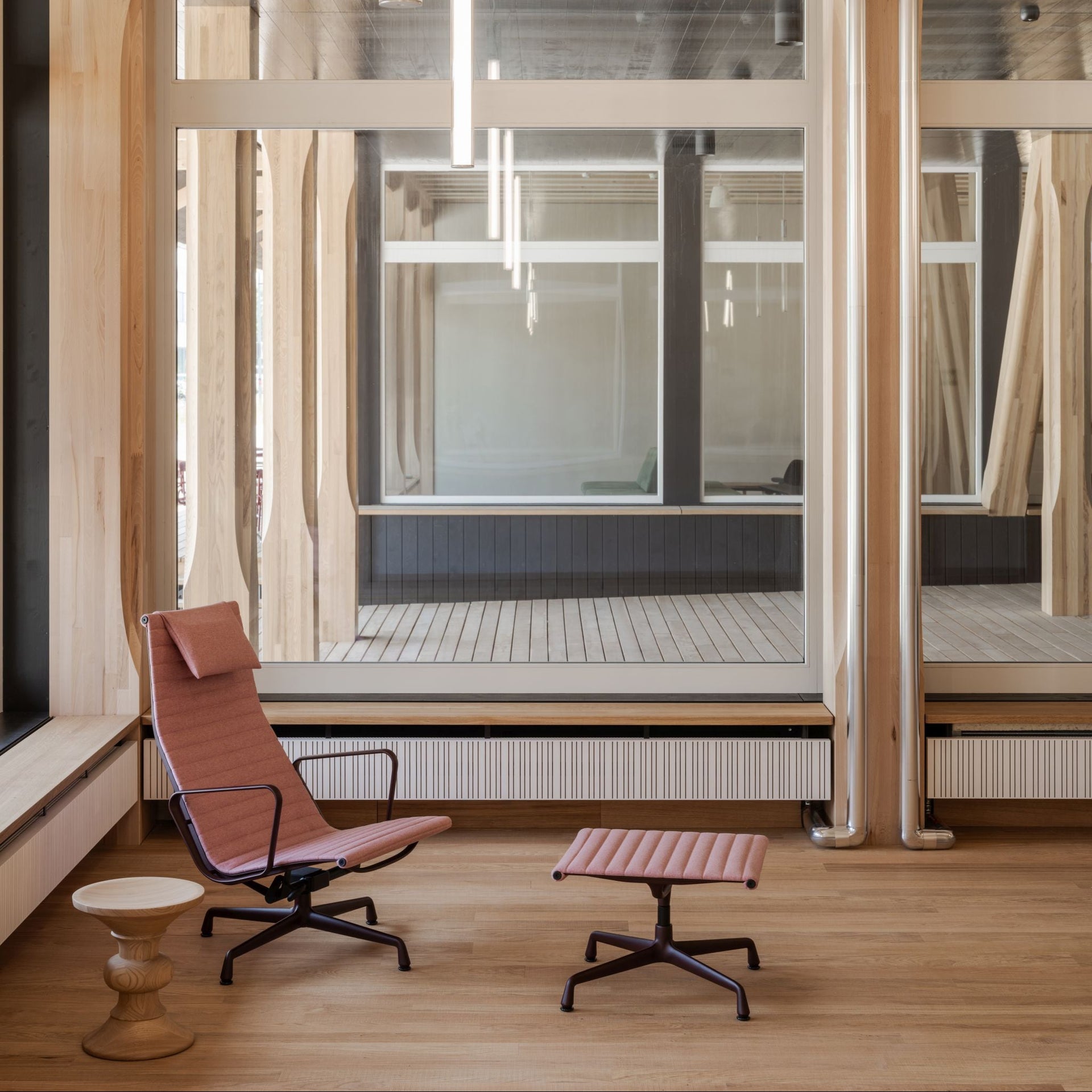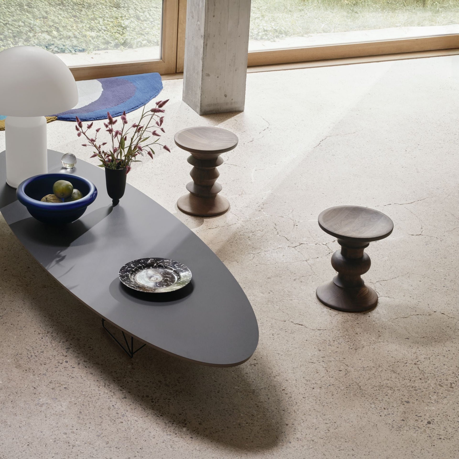 Seit 2025 entstehen die Eames Stools aus europäischen Hölzern und werden mit einer aktualisierten Oberflächenbehandlung versehen. Anstelle einer Lackierung kommt nun ein hochwertiges Hartwachsöl zum Einsatz, das die natürliche Struktur des Holzes besonders authentisch zur Geltung bringt. Dadurch glänzt die Oberfläche nicht mehr, sondern erscheint angenehm matt – ein Finish, das den Stools einen neuen, weichen und warmen Ausdruck verleiht.
