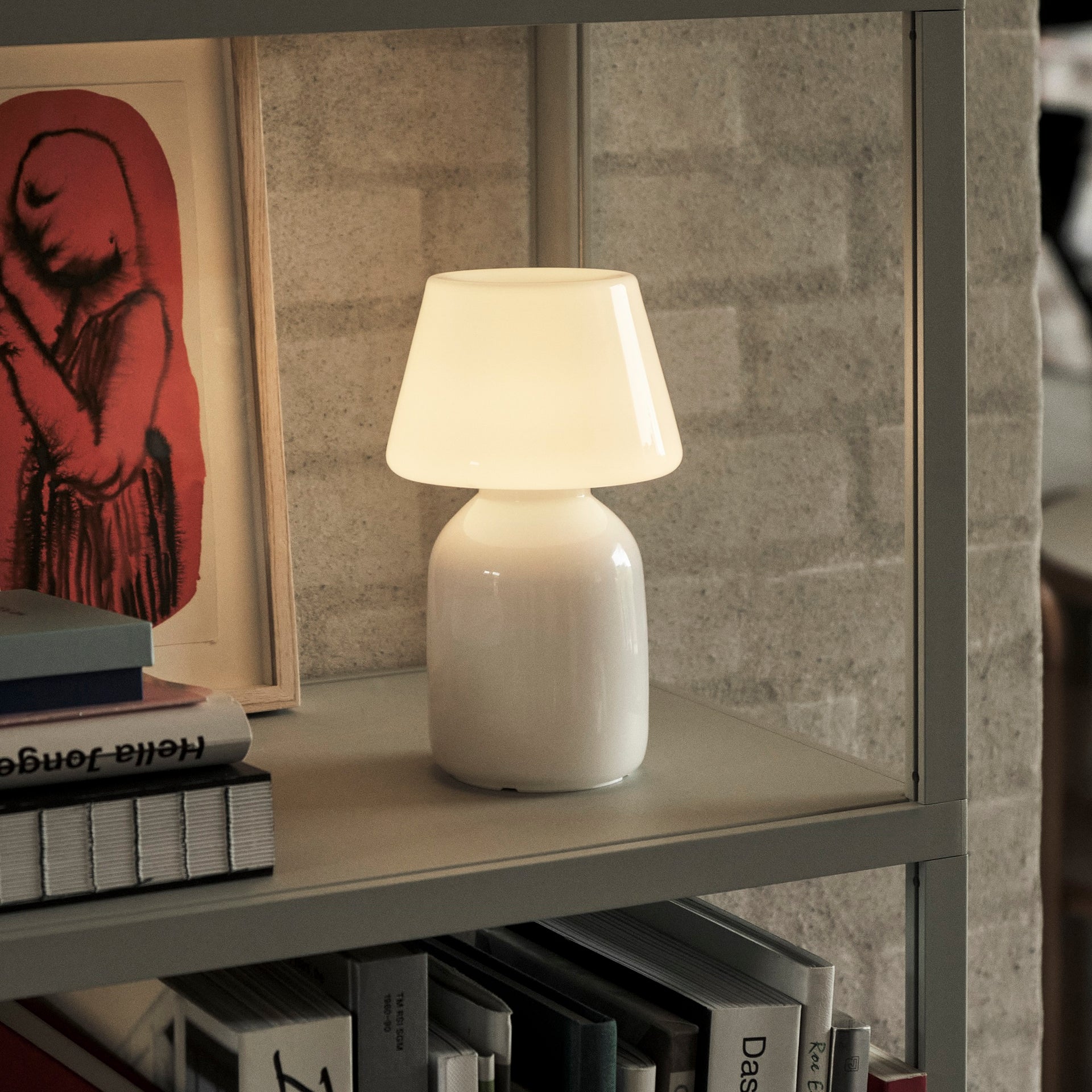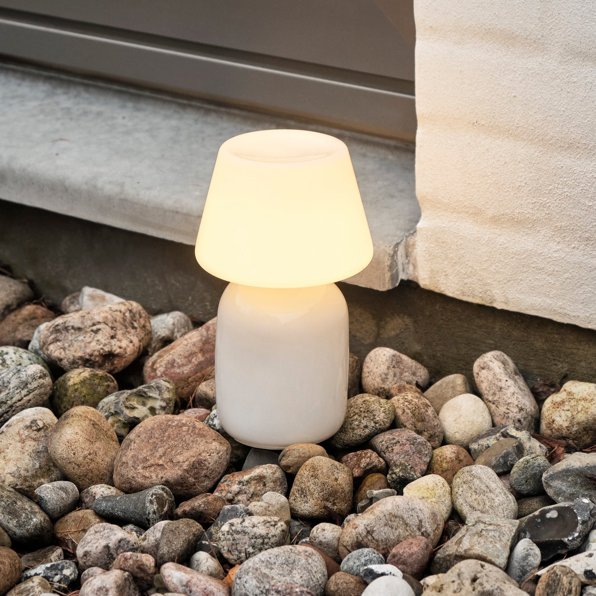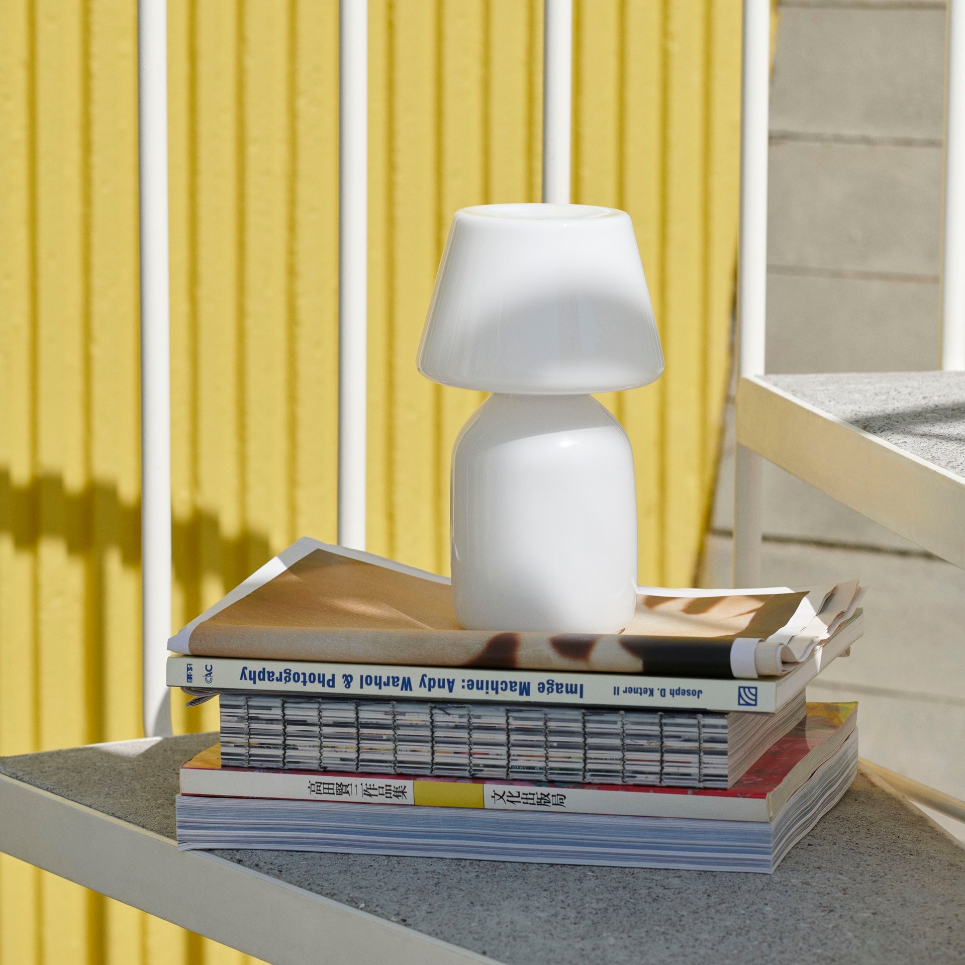 Die Apollo Portable Lamp von STUDIO 0405 ist die ideale tragbare Lampe für Innen- und Außenbereiche und schafft überall eine einladende Atmosphäre. Diese handgefertigte Akkulampe besteht aus einem einzigen Stück Opalglas und beeindruckt durch ihre weichen, fließenden Linien und eine elegante Silhouette, die klassische Lampendesigns zeitgemäß interpretiert.