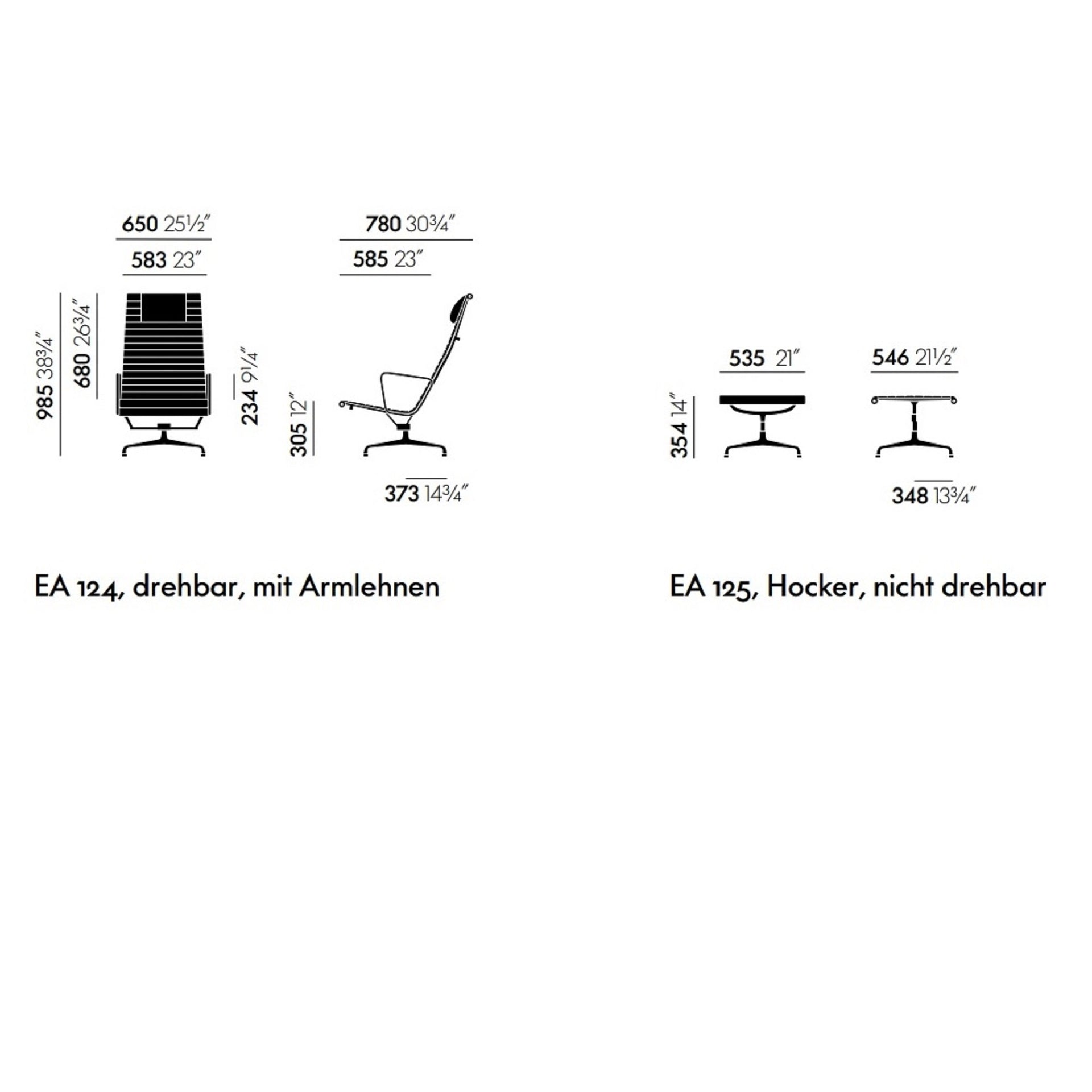 Vitra Aluminium Chair EA 124 + EA 125 Loungesessel mit Hocker