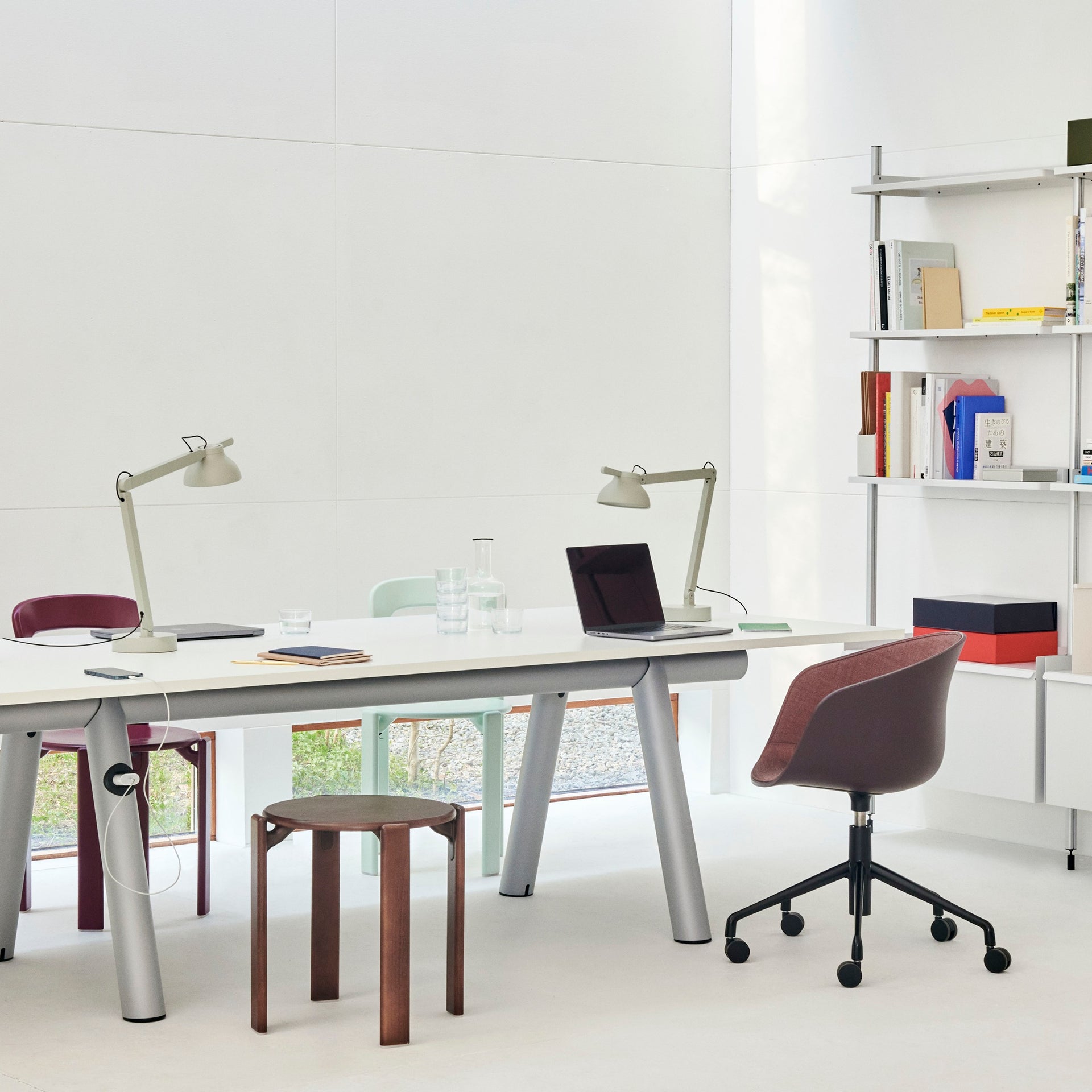 Jeder HAY Rey Stool ist mit einem lösungsmittelfreien Wasserlack veredelt, der die natürliche Schönheit des Holzes bewahrt und gleichzeitig gesundheitlich unbedenklich ist. So vereint der Hocker Komfort, Alltagstauglichkeit und ökologische Verantwortung auf elegante Weise.