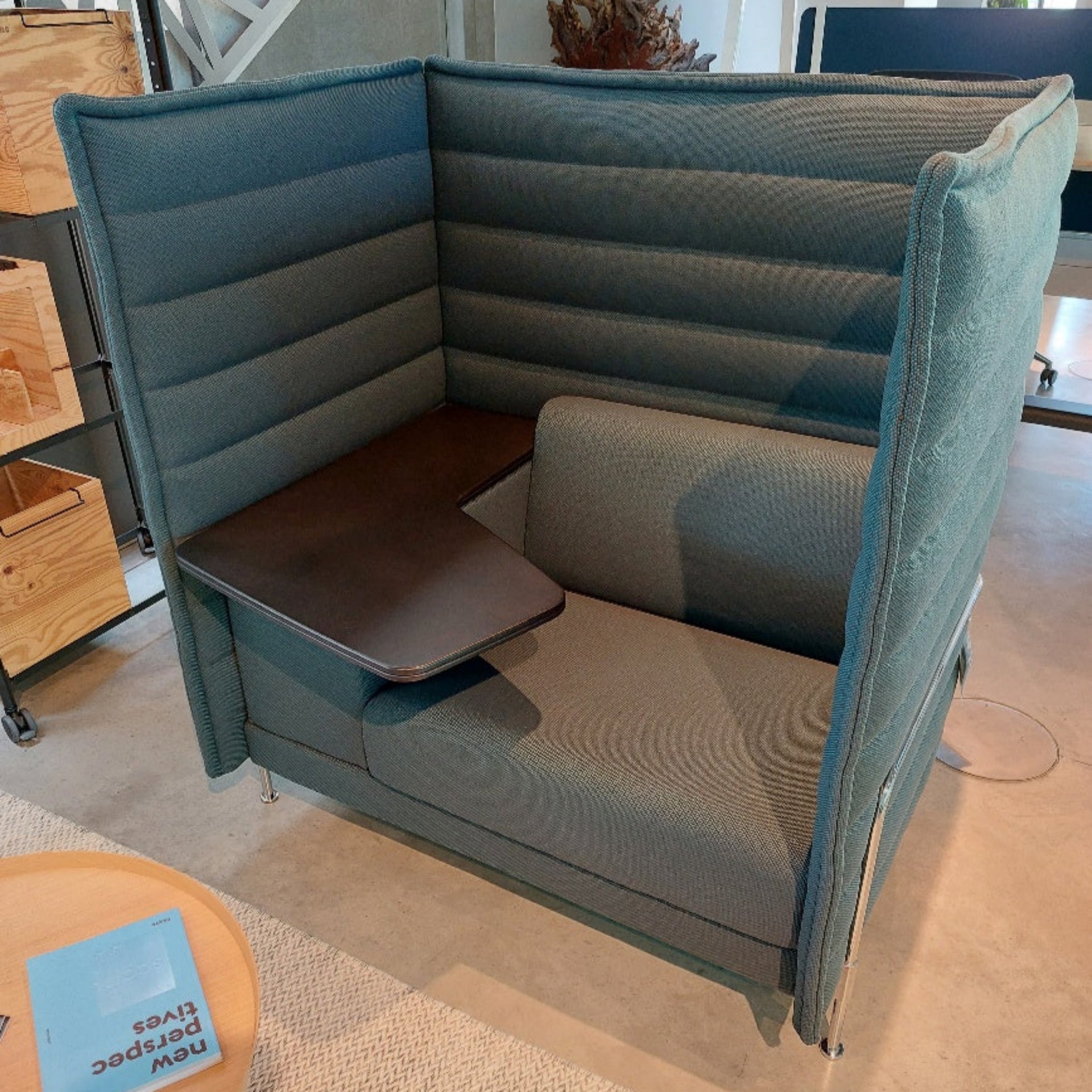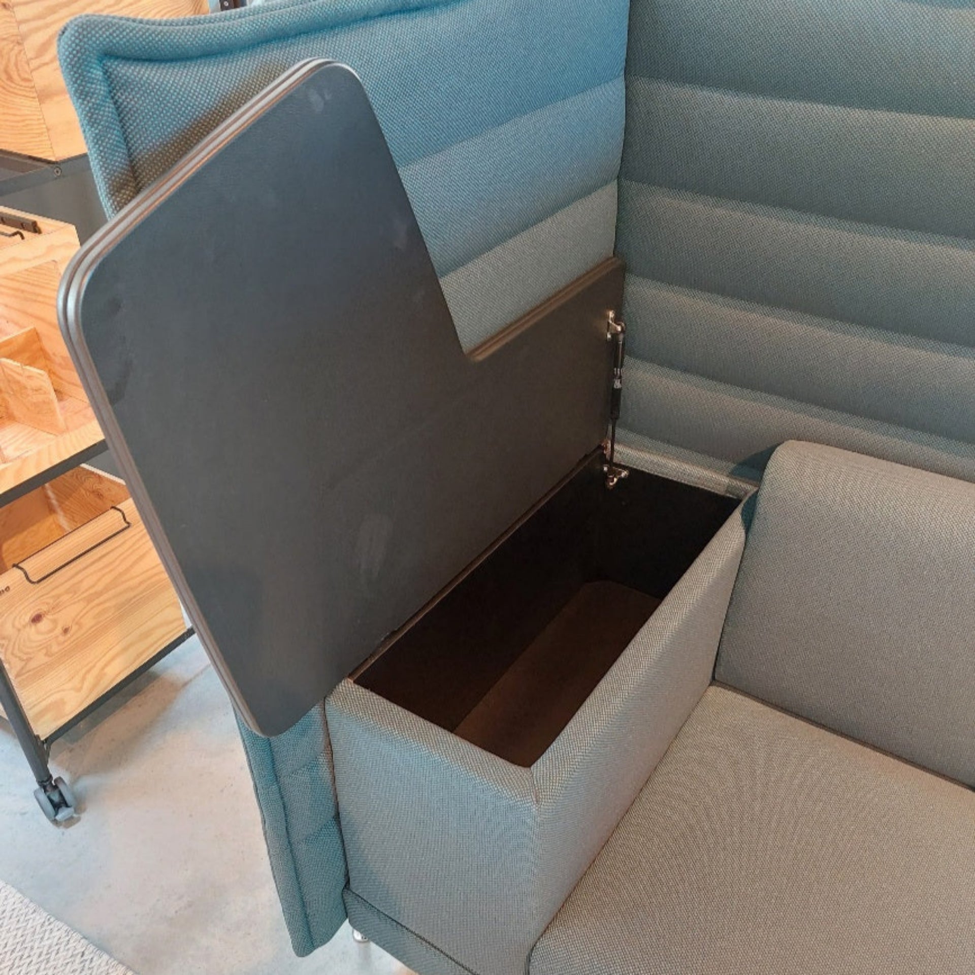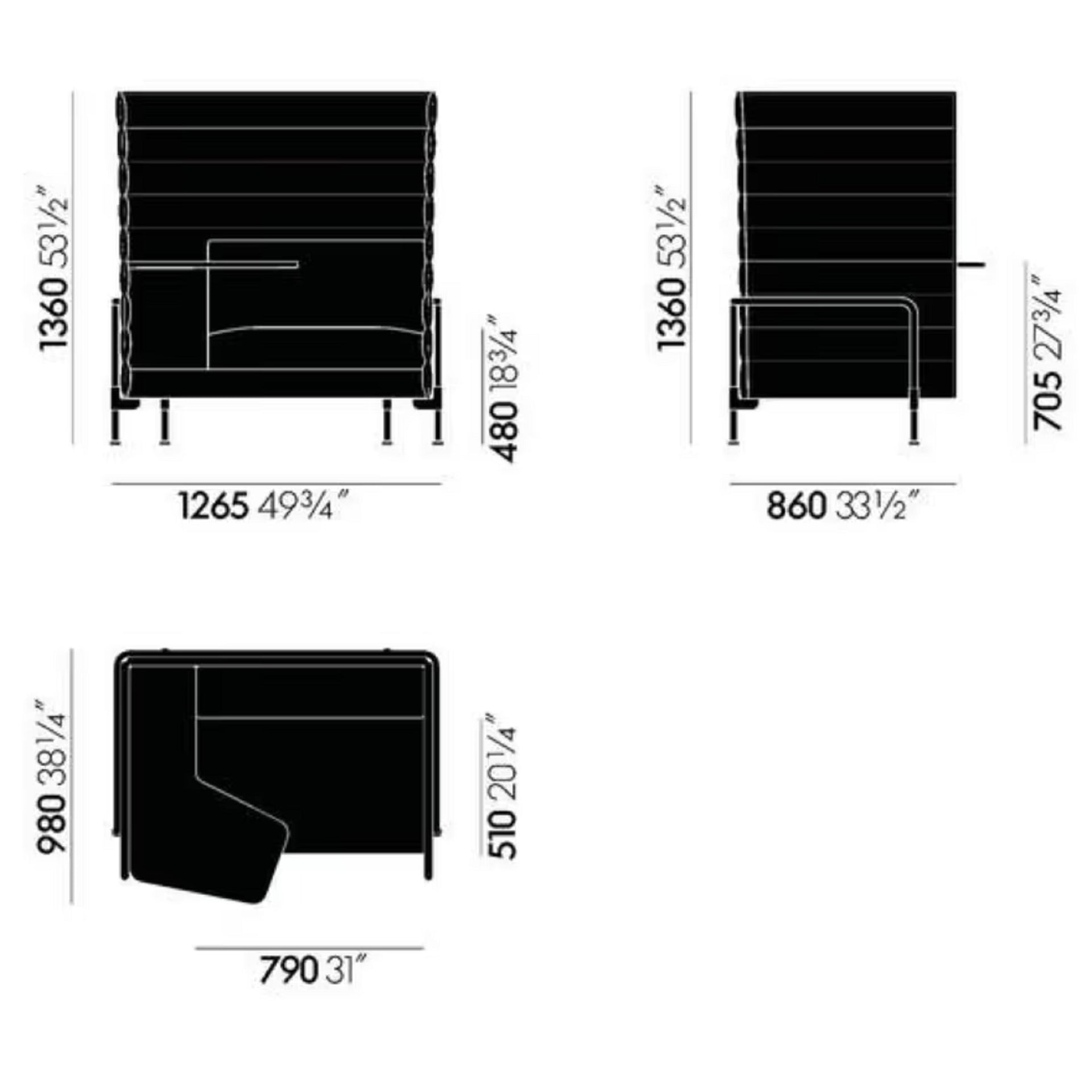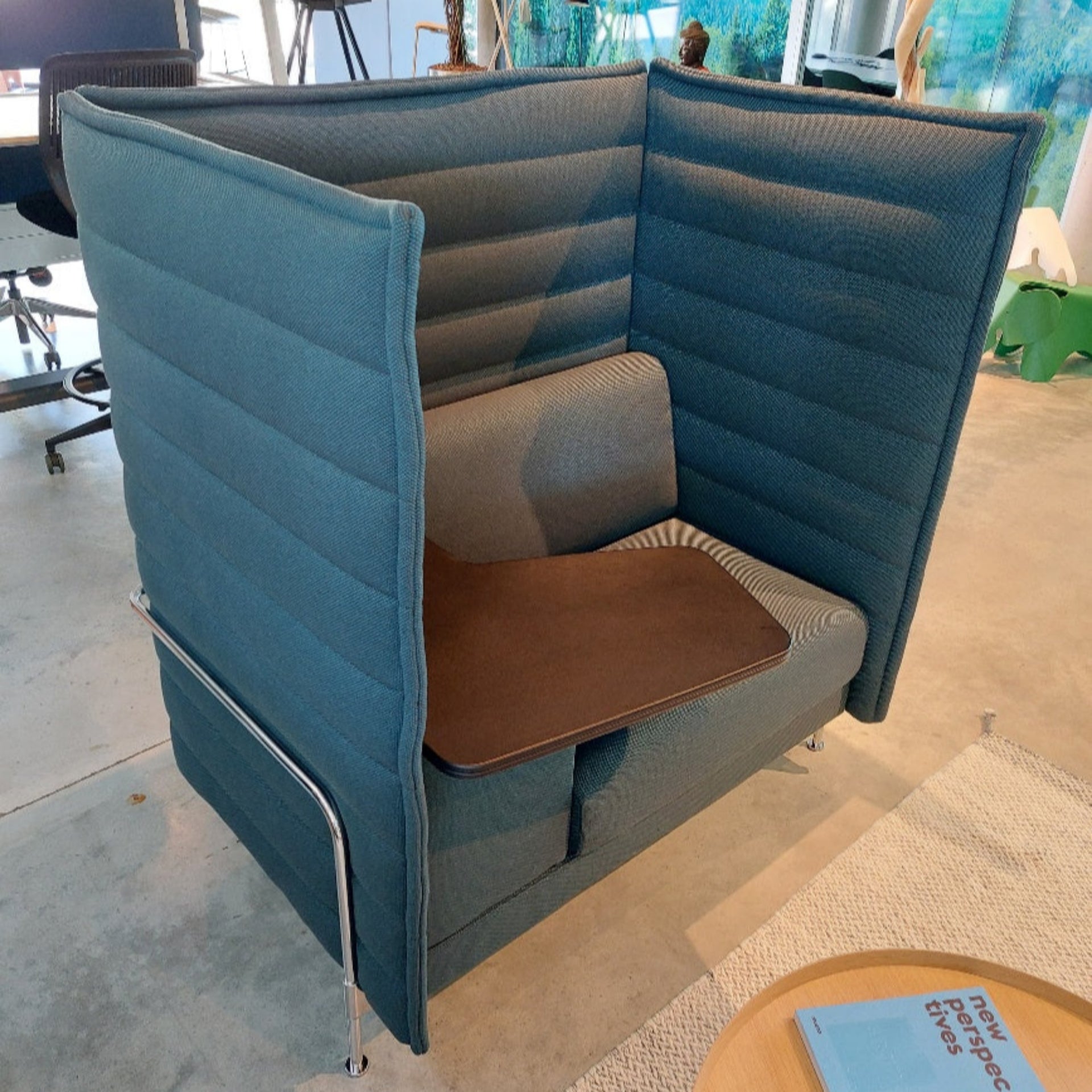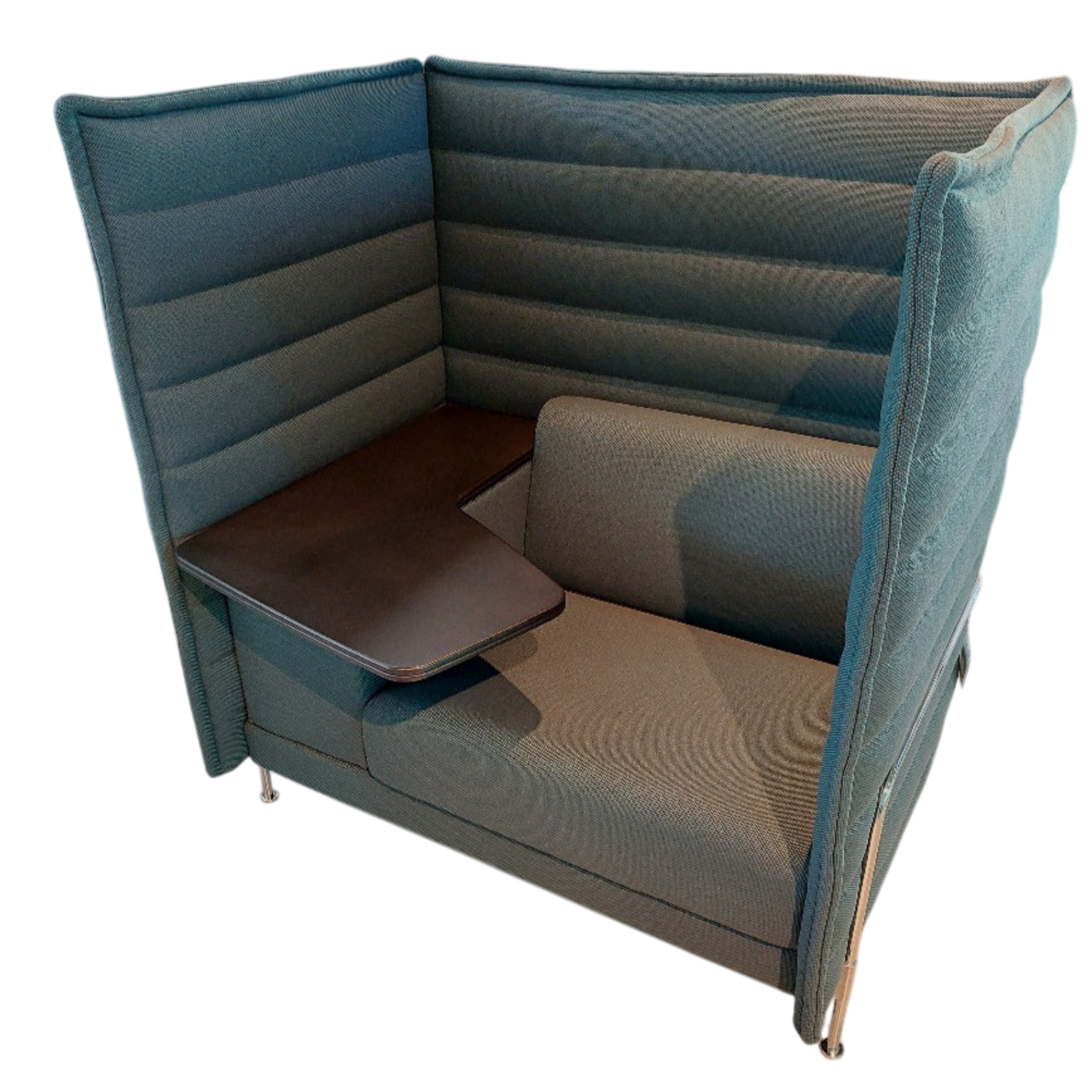 Korpus: hohe Rücken- und Seitenpaneele für optische und akustische Abschirmung, mit eingearbeiteter MDF Platte, über Reissverschlüsse miteinander verbunden.