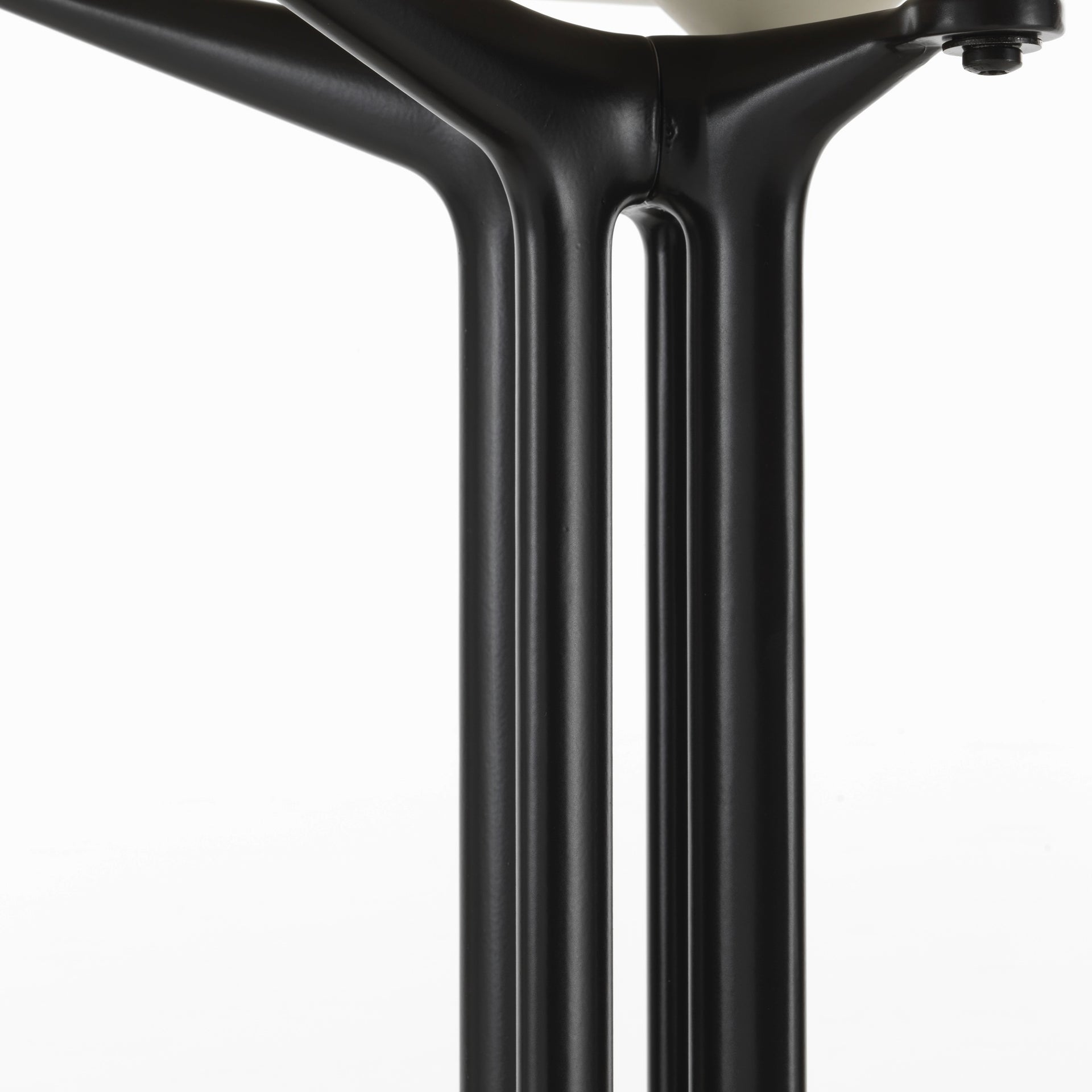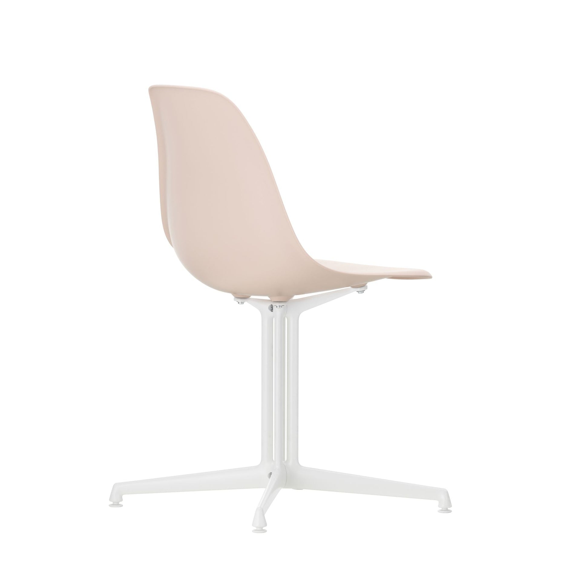 Das La Fonda-Gestell gehört zu den ungewöhnlichsten und elegantesten Untergestellen der Eames-Entwürfe: es arbeitet mit einem zentralen Bein, das aus mehreren parallelen Strängen besteht, die in ein Vierstern-Fußstück übergehen — leicht, skulptural und zugleich stabil. Diese Konstruktion verleiht dem DAL-Stuhl eine besonders feine Silhouette und macht ihn zum Blickfang in Dining-, Lounge- und Bürobereichen. Die neue Sitzhöhe wurde auf die anderen Gestellvarianten der Eames Plastic Chairs abgestimmt.